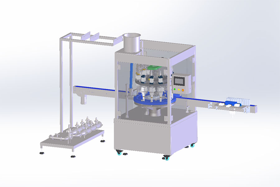 產(chǎn)品描述設備如下圖1: 此產(chǎn)線配置產(chǎn)品有(從前端到后端):回轉式高速上閥機組、離心式高速理閥機、供閥提升機、6工位高精度計量缸&單組增壓泵、6頭封口&6頭充氣一體機(正壓防爆電箱和防爆人機界面)。具有操作簡單,人機交互友好,故障指示等優(yōu)點。便于排查和排除故障。2.各機組完成的生產(chǎn)工藝和性能參數(shù):A.回轉式高速上閥機組如圖2所示 圖2 型號:SG-QGQW25-150HSF回轉式高速上閥機,16工位回轉式高速上閥機汲取國外先進設備技術研發(fā)而成,機組由閥門提升機,轉盤式離心理閥機(此設備根據(jù)閥門形式非標定制)和高速回轉上閥機構成。工作原理為一個送閥軌道...